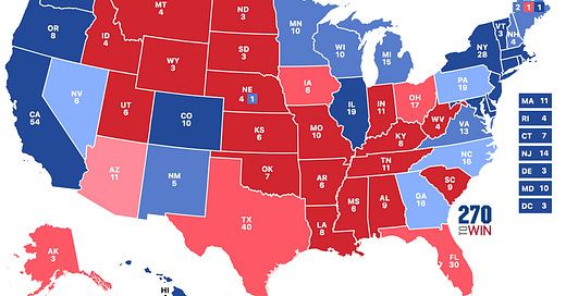 But it might not! I only give it a ten percent chance. I think Harris is more likely to win than Trump (65/35). Obviously I may very well be wrong. You may regret having read this post, should you be pro-Harris, for which my future apologies. But as I said, I think there’s some merit in laying out your subjective probabilities for outcomes and your justification, so hopefully we will at least know why I was wrong.